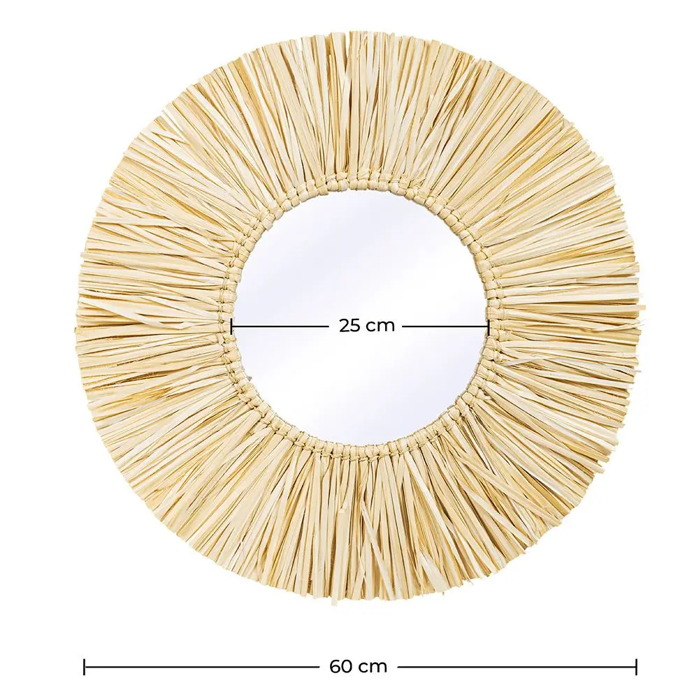 Confie no estilo boho deste espelho de parede para doar à sua decoração interior um toque natural e acolhedor. O nosso espelho redondo Gaui tem um diâmetro de 60 cm e é feito à mão em esparto numa cor natural. O seu design casual e simples faz dele o espelho de design ideal para combinar com qualquer estilo de decoração e pode ser colocado em qualquer divisão da casa.