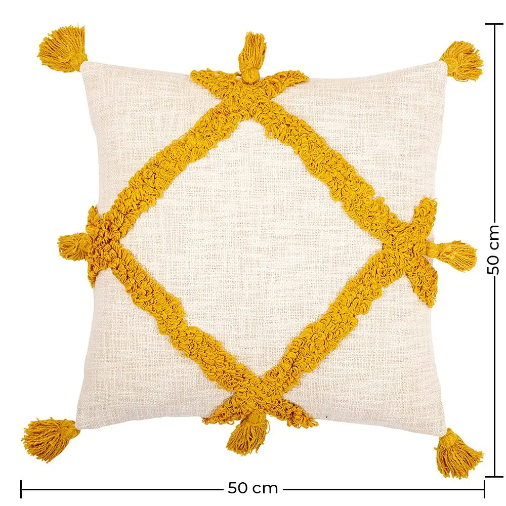 Se necessita de almofadas para um sofá, poltrona ou mesmo para a cama, opte por almofadas de design com texturas como esta almofada quadrada. A nossa almofada de estilo boho Olra é feita de algodão e é macia e fofa. O enchimento em polifibra oferece um apoio confortável e reconfortante. Esta almofada quadrada com toques nórdicos é perfeita para doar classe e luxo à sua decoração interior. Enchimento incluído.