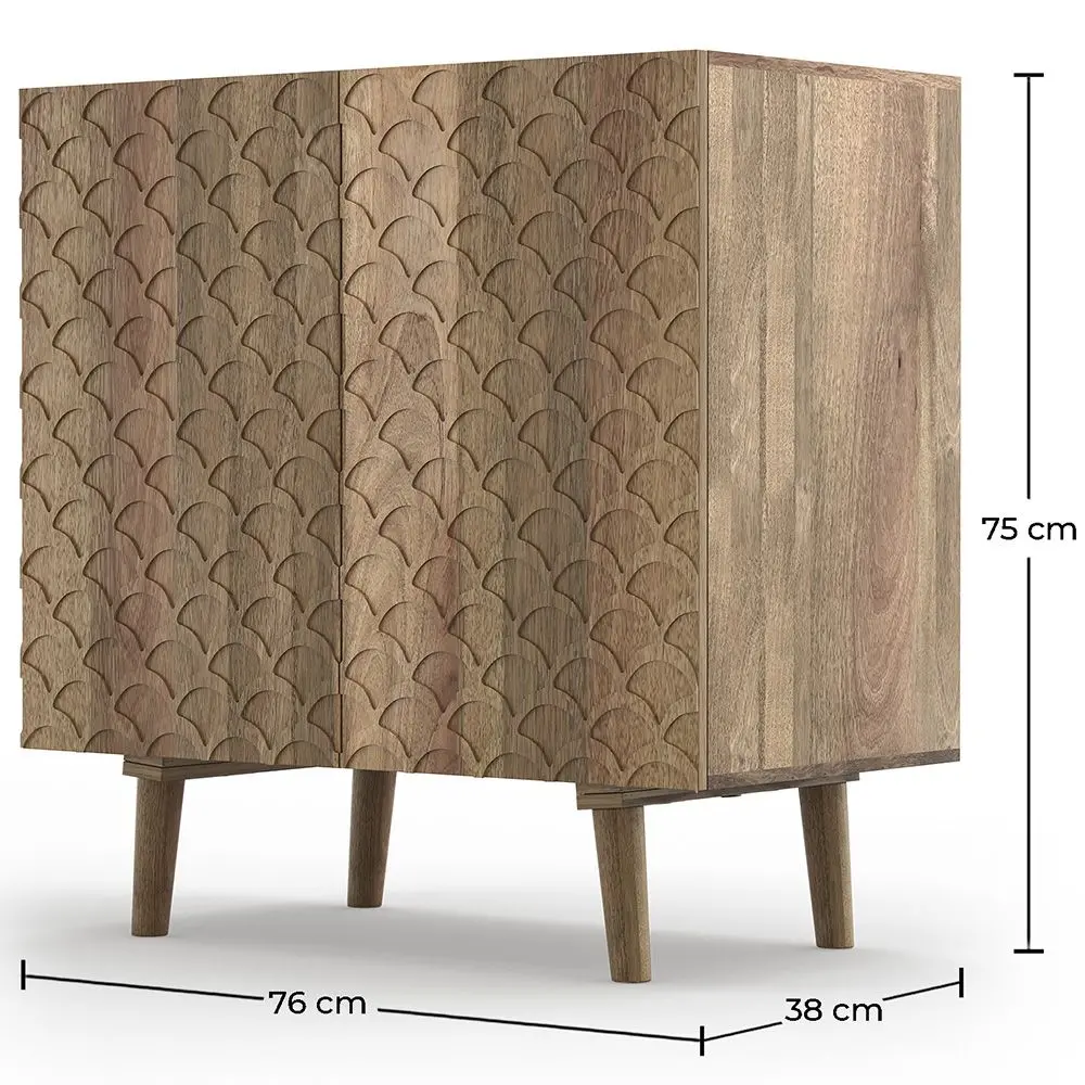 Se o estilo decorativo que melhor se adequa ao seu estilo de vida é o estilo boho, opte por este aparador de madeira natural. As portas são esculpidas com um design muito especial que trará encanto à sua casa. Além disso, este aparador de design que pode colocar na sua sala de jantar, sala de estar ou cozinha é uma solução perfeita de armazenamento graças ao seu amplo espaço interior.