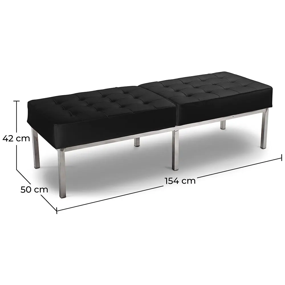 Com a sua elegância e conforto excecional, este Banco de 3 lugares encaixar-se-á perfeitamente no seu escritório ou na sua casa. Está disponível numa grande variedade de cores. O assento repousa sobre 4 pernas de aço que combinam perfeitamente com as cores dos seus estofos em imitação de couro e que lhe dão uma aparência moderna e elegante. O Banco de 3 lugares é amplo e confortável ao mesmo tempo e vai sentir-se completamente relaxado nele.