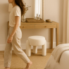 Este banco bouclé moderno é a peça perfeita para adicionar calor, conforto e estilo à sua casa. Estofado em suave tecido bouclé branco sujo, oferece uma textura acolhedora e sofisticada, ideal para quem procura combinar elegância e funcionalidade numa só peça de mobiliário. O seu design arredondado com pés cilíndricos cria um aspeto contemporâneo que se integra facilmente em diferentes ambientes, desde quartos e salas de estar até cantos de leitura ou closets.