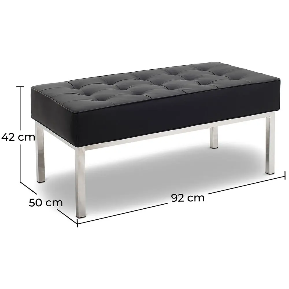 Com a sua elegância e conforto excecional, este Banco Kanel de 2 lugares encaixar-se-á perfeitamente no seu escritório ou na sua casa. Está disponível numa grande variedade de cores. O assento repousa sobre 4 pernas de aço que combinam perfeitamente com as cores dos seus estofos em couro e que lhe dão uma aparência moderna e elegante. O Banco Kanel de 2 lugares é amplo e confortável ao mesmo tempo e vai sentir-se completamente relaxado nele. Este banco está disponível em várias cores.