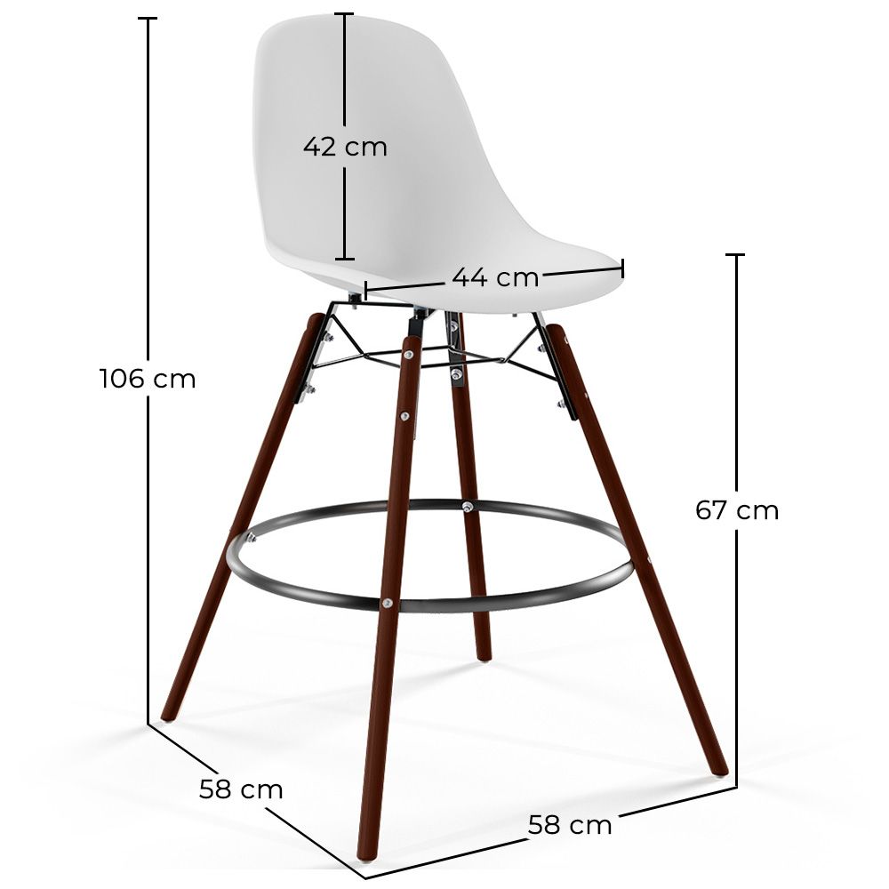 Os prestigiados bancos Lumi, com este design, transformam-se em confortáveis bancos de bar. O assento é feito de polipropileno e as pernas são de madeira e aço, o que torna este banco de bar um assento estável e durável.