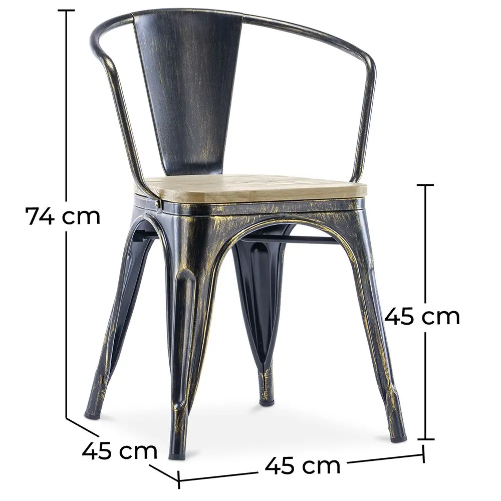 Cadeira Bistrot Metalix muito confortável e extremamente leve, feita de ferro vintage e madeira clara. Esta cadeira com design elegante pode ser usada perfeitamente em restaurantes e bares como uma cadeira de balcão. É facilmente empilhável, portanto, mais fácil de armazenar e mover, o que ainda se soma ao seu peso reduzido.
