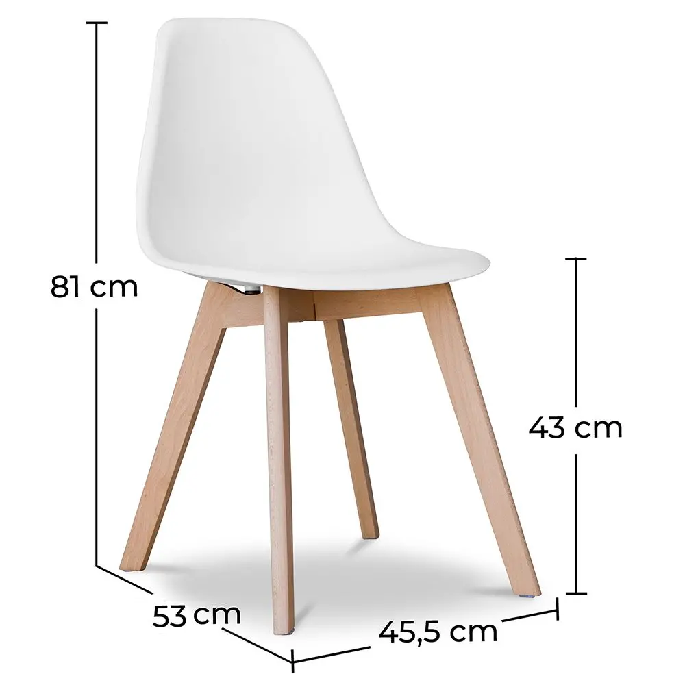 A cadeira Brielle com pernas em madeira maciça é formada por um assento de plástico resistente.