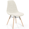 Versatilidade e design combinam nesta cadeira branca sem braços estofada em tecido bouclé, perfeita para a sala de jantar, escritório em casa ou áreas de espera. Sua estrutura leve e contemporânea com pernas de madeira clara e aço oferece estabilidade e um visual sofisticado. Conforto e estilo em uma peça funcional que se adapta a múltiplos ambientes.