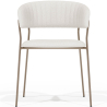 A cadeira de jantar estofada em tecido bouclé, com uma estrutura metálica na cor champanhe, é uma peça elegante e versátil que combina perfeitamente estilo e conforto. O seu estofamento em tecido bouclé proporciona uma textura suave e acolhedora, oferecendo uma sensação de luxo e conforto para aqueles que se sentam nela. Esse tecido também é durável e resistente ao desgaste, tornando-o uma opção ideal para espaços de grande movimento, como hotéis, restaurantes e também para o lar. O metal utilizado na sua estrutura é resistente e robusto, garantindo uma base sólida e estável para a cadeira. Além disso, a cor champanhe é elegante e versátil, permitindo que se integre perfeitamente em diferentes estilos de decoração.