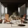 A cadeira Adirondack tem o encosto inclinado e o assento contornado, para ser mais ergonómica, os seus apoios para braços são largos e as suas pernas são resistentes e muito estáveis.