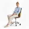 Esta cadeira de escritório giratória com rodízios é elegante e moderna. É ajustável em altura e estofado em tecido de retalhos.