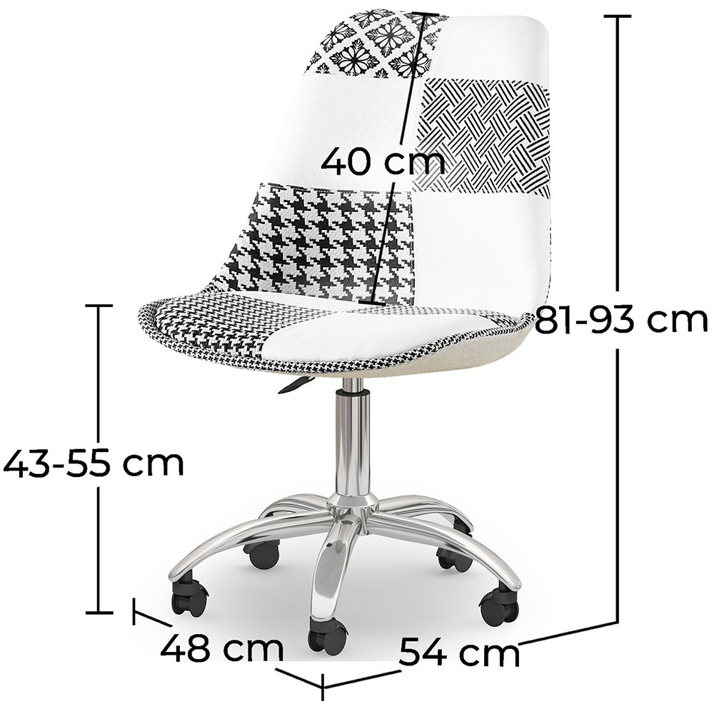 Esta cadeira giratória de escritório com rodas revestida em tecido patchwork é a melhor opção para adicionar um toque moderno e funcional ao seu escritório ou mesa em casa. A cadeira é feita com materiais de alta qualidade premium para garantir sua durabilidade. O assento acolchoado e o encosto alto e ergonômico fornecem o suporte adequado para uma postura correta enquanto trabalha. As rodas permitem que você se mova facilmente para pegar os materiais de que precisa sem ter que se levantar. O revestimento em tecido patchwork dá a esta cadeira um toque moderno com um estilo único. É a escolha perfeita para qualquer espaço de trabalho ou estudo.