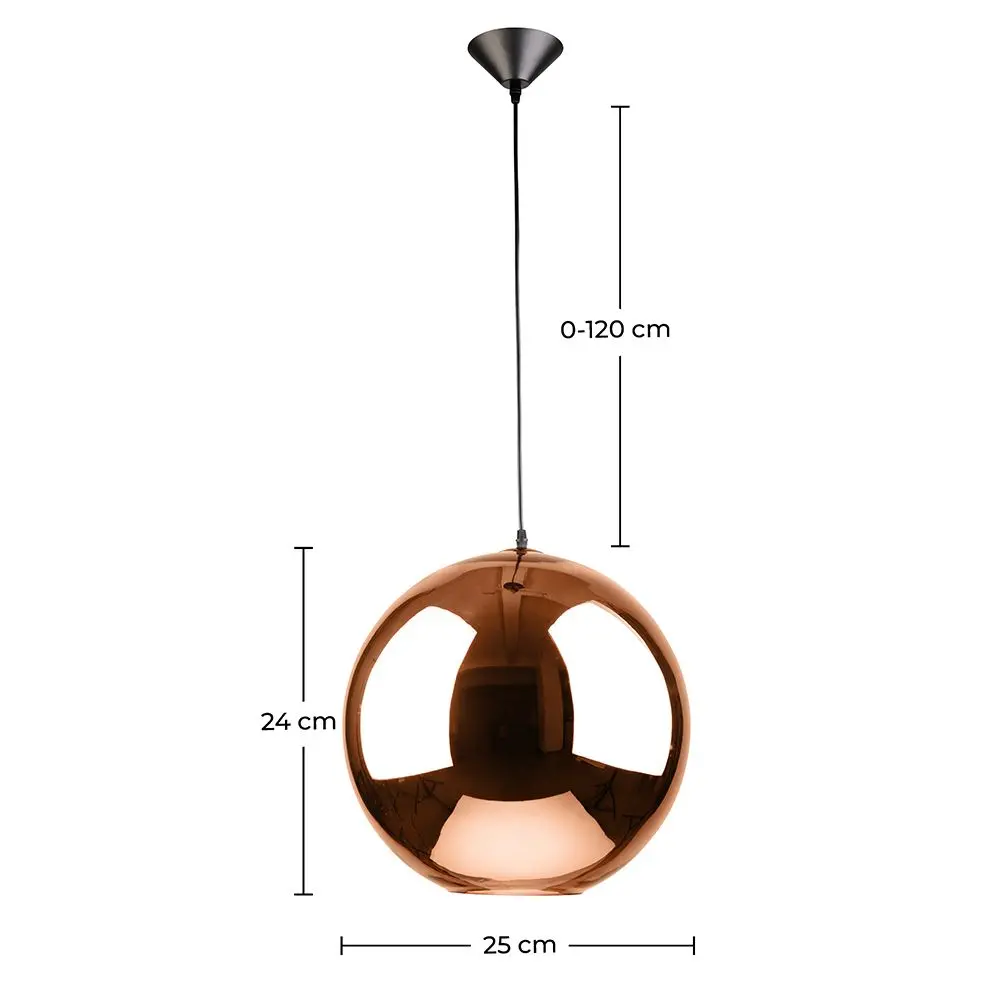 Candeeiro Cooperlight - 25 cm - Metal Cromado. O Candeeiro Cooperlight de metal cromado de 25cm de diâmetro, é um dos designs mais famosos do mundo da iluminação atualmente. Este candeeiro suspenso é feito de metal cromado por galvanoplastia e o seu acabamento é feito de aço de carbono. Pode ajustar o cabo de 250 cm da sua lâmpada Cooperlight para que sirva tanto para espaços com tetos muito altos como para divisões tetos de altura normal. Não duvide que o Candeeiro suspenso Cooper em metal cromado é um dos designs mais modernos e originais da última década.