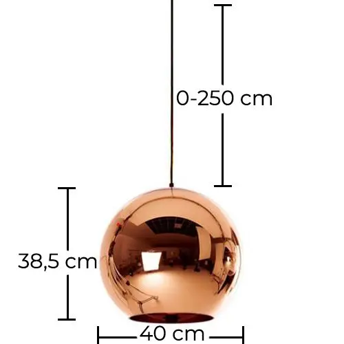 Candeeiro Cooperlight 40 cm - Metal Cromado. O Candeeiro Cooperlight de metal cromado de 40cm de diâmetro é um dos designs mais famosos do mundo da iluminação atualmente. Este candeeiro suspenso é feito de metal cromado por galvanoplastia e o seu acabamento é feito de aço de carbono. Pode ajustar o cabo de 250 cm da sua lâmpada Cooperlight para que sirva tanto para espaços com tetos muito altos como para divisões tetos de altura normal. Não duvide que o Candeeiro suspenso Cooperlight em metal cromado é um dos designs mais modernos e originais da última década.