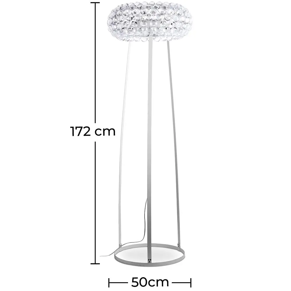 Candeeiro de Mesa Crystal 50cm - Acrílico. Este candeeiro de pé pertence à coleção Crystal. Trata-se de um candeeiro de 50 centímetros de diâmetro e 172 centímetros de altura que vai irradiar romantismo e elegância onde quer que a coloque. O candeeiro Crystal é feito com pérolas acrílicas que trazem luminosidade e sofisticação à sua sala de estar, quarto ou onde quer que o coloque. A luz emitida por este candeeiro de pé é agradável e suave, perfeita para proporcionar um ambiente acolhedor. A coleção Crystal é muito conhecida pelos amantes do design e da decoração, já que a sua originalidade e beleza não passam despercebidas a ninguém