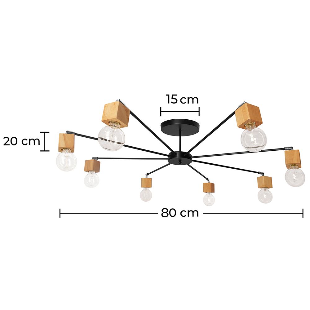 Este candeeiro de teto original de 8 lâmpadas é fabricado em metal e madeira, o seu design inovador não vai passar despercebido a ninguém. Perfeito para colocar numa divisão de grandes dimensões, com este candeeiro de teto, não vai ter nenhum problema em iluminar bem qualquer espaço.