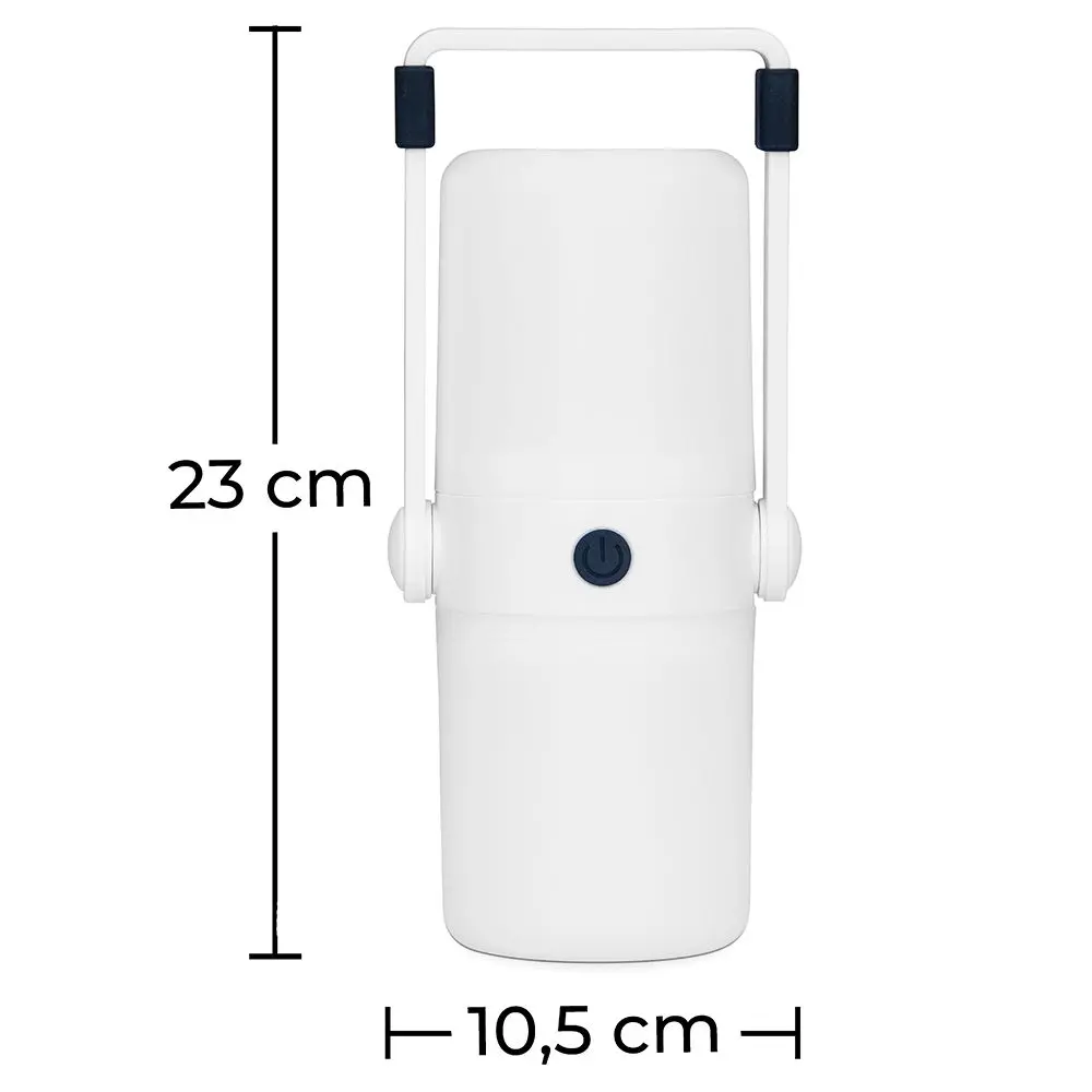 Este candeeiro portátil é muito prático de usar durante as suas viagens como um candeeiro de campismo ou para ter em casa e colocar em algum lugar onde não existam tomadas. É um candeeiro com uma bateria de lítio, com sistema de proteção contra sobrecarga e descarga excessiva, que é carregada através de USB. Tem dois modos de iluminação: a parte superior iluminada ou a superior e inferior iluminadas, para que possa iluminar com mais ou menos intensidade, dependendo da situação. Outra característica deste candeeiro LED portátil é que ele tem uma saída USB para que possa carregar o seu telemóvel em situações de emergência.