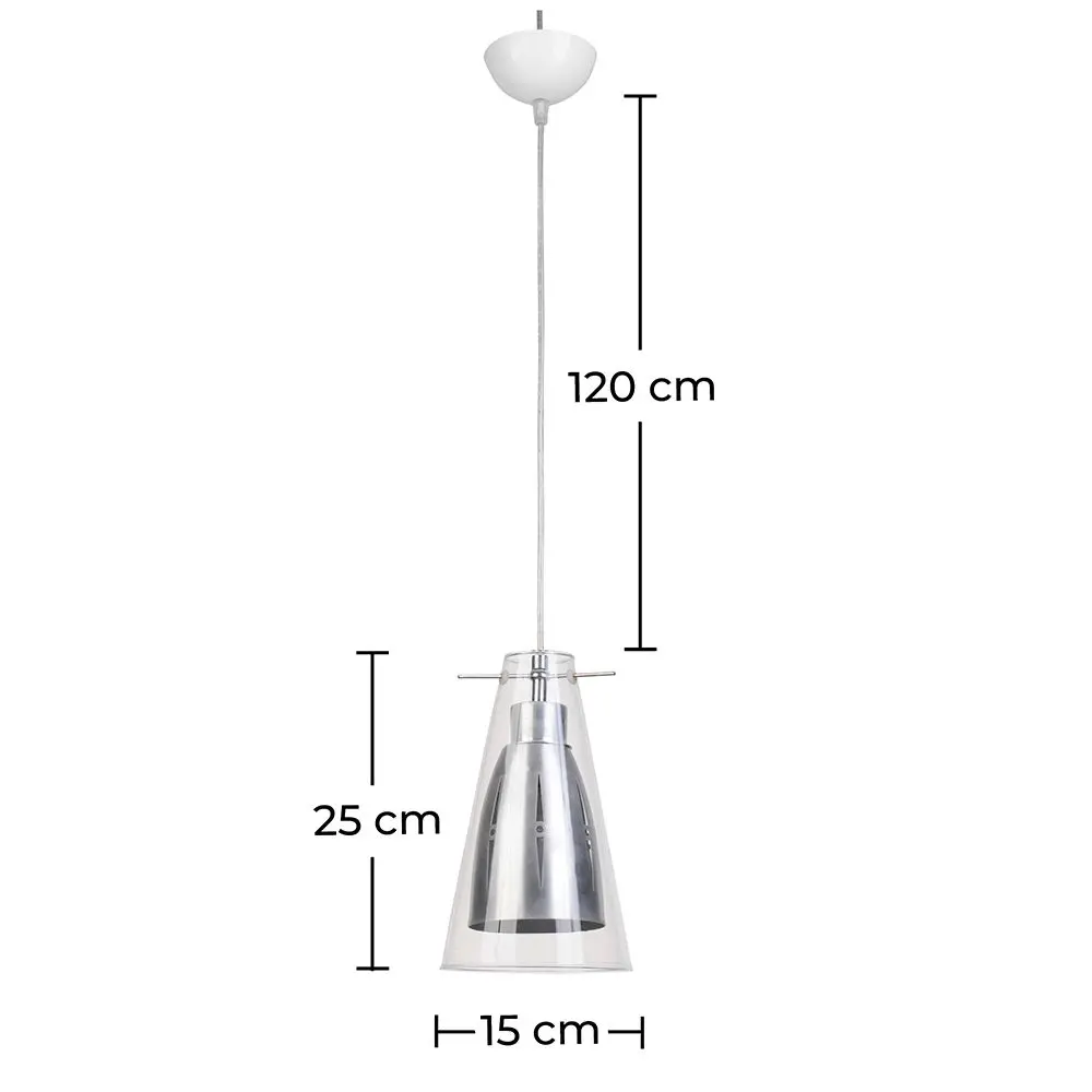 Este candeeiro original é feito com um abajur de vidro exterior e outro interior de metal. Esta combinação de materiais e estruturas faz deste candeeiro um objeto de iluminação e decoração perfeito para melhorar a aparência de qualquer espaço. Graças ao seu cabo de 180 cm, poderá ajustar a altura na qual deseja colocar o candeeiro suspenso, o que o torna o objeto ideal para tetos altos ou baixos. Se está à procura de um objeto de iluminação que traga modernidade e originalidade à sua decoração interior, o candeeiro Apollo é a sua melhor opção.