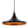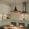Candeeiro de Suspensão Beat Shade - Wide - Alumínio. O exterior de latão martelado cria uma superfície preta que contrasta com a cor dourada quente do interior. Este design criativo proporciona uma luz direta e pode ser um complemento artístico para qualquer estilo de decoração. Este candeeiro suspenso Beat Shade está disponível também com o exterior branco.