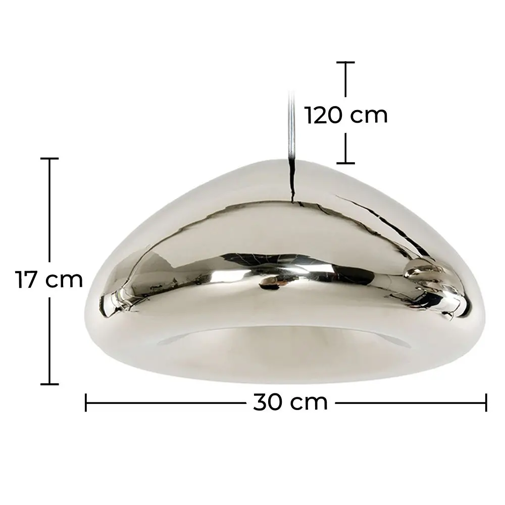 Candeeiro Suspenso Empty - Metal Cromado. O candeeiro suspenso Void, é fabricado em metal e tem um diâmetro de 30 centímetros. É um candeeiro original e moderno que vai iluminar qualquer espaço com estilo e design. Este candeeiro Empty tem um cabo de 120 centímetros que pode ajustar de acordo com as suas necessidades. A sua lâmpada de halogénio emite uma luz quente e melhora a vida útil e a eficiência do candeeiro.