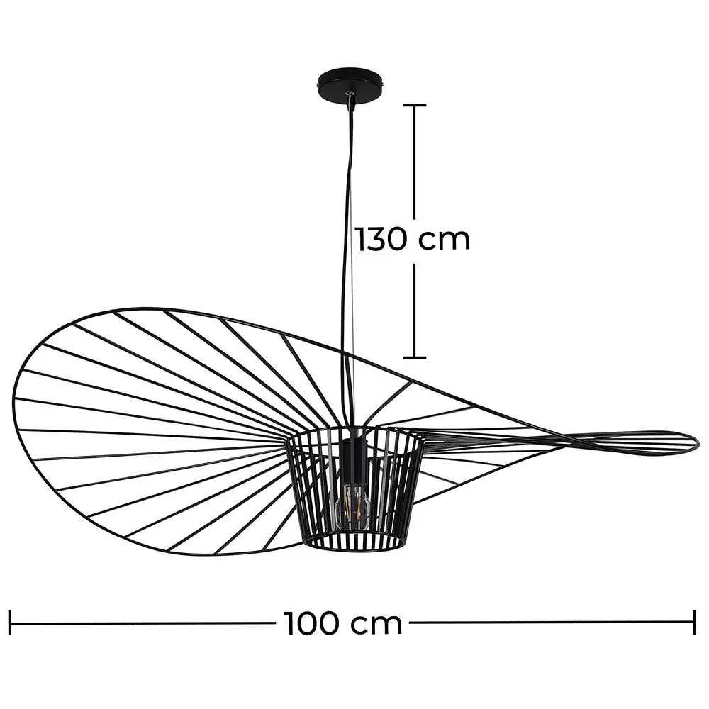 Este fantástico candeeiro de design não só iluminará o seu espaço com estilo, como também será o centro da decoração da sua casa. Este candeeiro suspenso tem um majestoso abajur de 100 cm de diâmetro que irá atrair a atenção de todos os seus convidados devido ao seu design exclusivo e inovador. O fio de 130 cm de comprimento é ajustável em altura, o que o torna perfeito para colocar em tetos altos ou normais.
