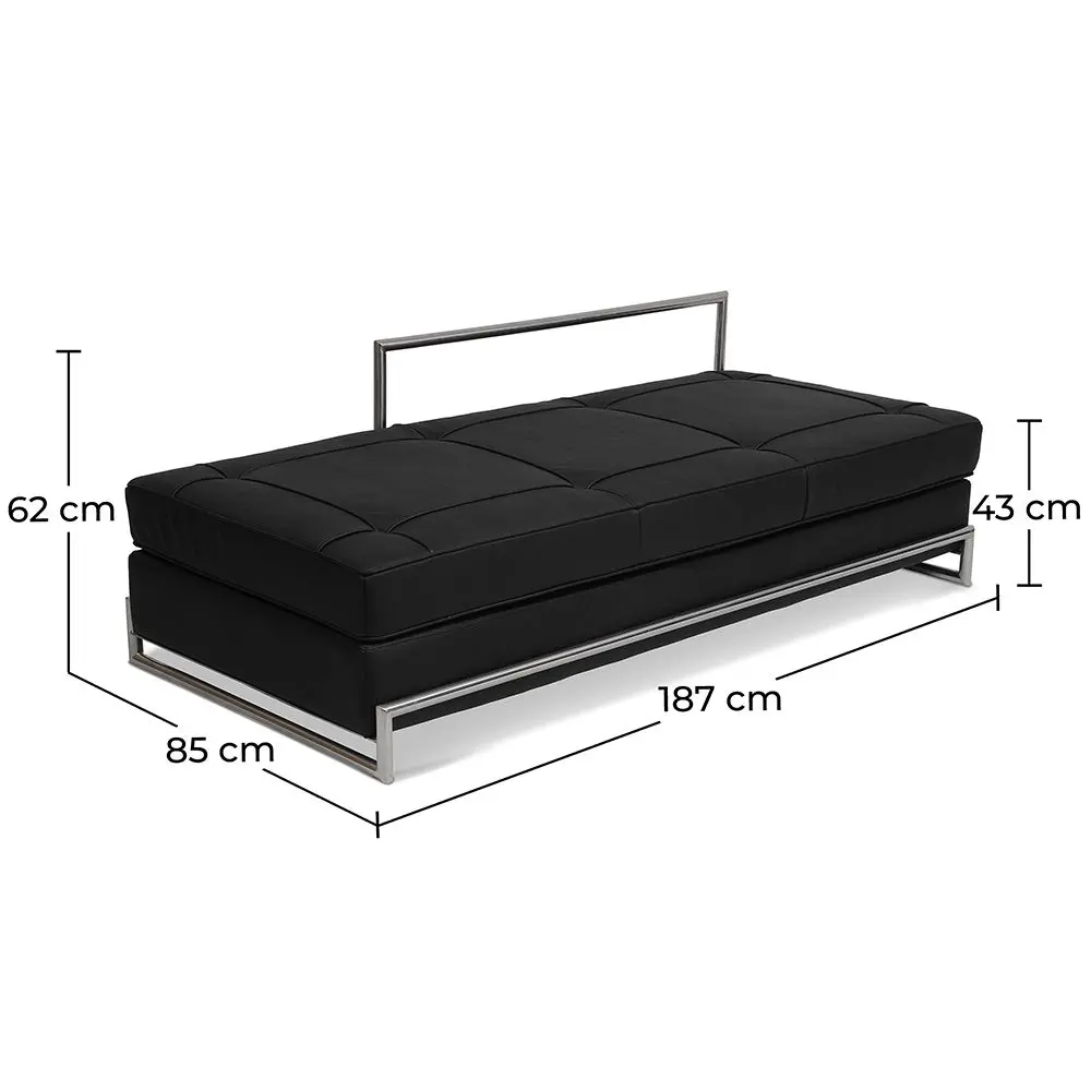 É um Divã muito atraente e cómodo, particularmente adequado para obter um relaxamento ótimo. O seu suave assento em couro repousa sobre uma sólida estrutura de aço cromado. Coloque-o no seu escritório ou na sua sala de estar e comece a desfrutar do seu charme e elegância. A sua aparência de design moderno faz com que este magnífico Divã possa ser adaptado a qualquer divisão da casa. Vai estar sempre disponível para um momento de agradável relaxamento. Além disso, o seu estilo refinado vai melhorar a aparência do seu interior com um toque contemporâneo. Este Divã está disponível em várias cores.