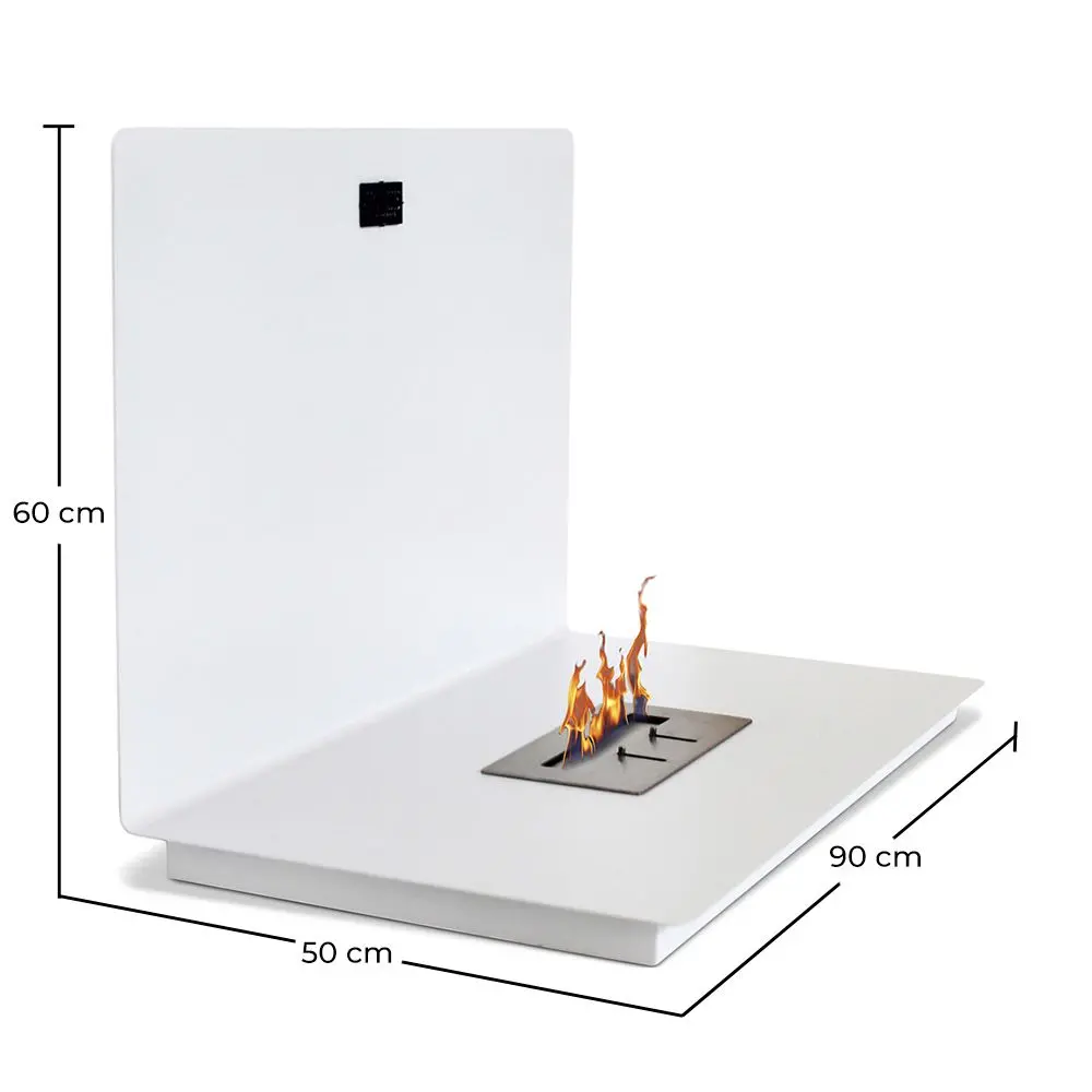 Esta lareira não precisa de uma conduta de escape: A limpeza da lareira acabou! Esta lareira de design vai tornar-se parte da sua decoração interior. Pode colocá-la em qualquer lugar, embora seja preferível fazê-lo numa divisão bem ventilada. Não espere mais para substituir a sua lareira antiga! Além disso, uma lareira a etanol não produz nenhum tipo de fumo, odores, cinzas, pó, fuligem ou faíscas. Esqueça os troncos de lenha rolantes e crepitantes; as chamas só produzem vapor de água e o equivalente a 3 velas de dióxido de carbono, o que gera uma atmosfera quente. Essa combustão emite a mesma quantidade de CO2 que um ser humano, portanto não há nenhum risco. Em termos da sua manutenção, esta limita-se à recarga do combustível (etanol gel para os recipientes e líquido para o queimador de óleo), um líquido 100% natural, destilado das fábricas de açúcar. A lareira de etanol é também uma grande fonte de calor que vai fazer com que poupe dinheiro. A sua capacidade de aquecimento é semelhante à produzida por dois ou três radiadores elétricos, dependendo do modelo, e tem um consumo muito baixo: de 0.35 L a 0.50 L de etanol por hora. Por último, todos os nossos queimadores de etanol têm uma parede dupla (3mm 2mm) e são 100% soldados para evitar qualquer risco, e todos os materiais foram usados de acordo com as normas de segurança (incluindo um sistema montado em todas as lareiras da parede).