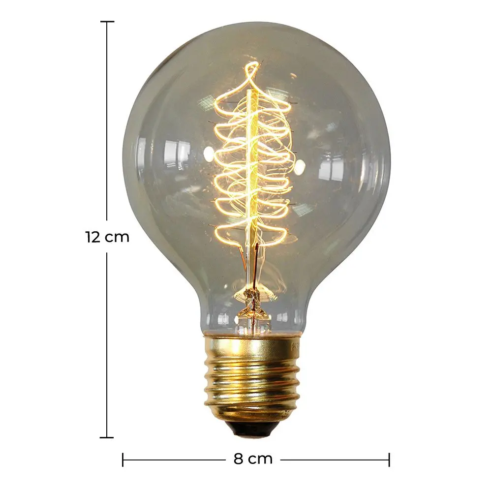 Esta lâmpada pertencente à coleção Edison é um dos objetos de iluminação mais bonitos e originais. Graças ao seu estilo vintage, tal como aquelas inventadas por Thomas Edison, vai trazer um toque especial e acolhedor a qualquer espaço. Esta lâmpada de 40W tem um design tão bonito que pode ser usada com qualquer candeeiro para o complementar ou até de forma independente como objeto de decoração ao mesmo tempo que ilumina. A luz emitida pelos filamentos desta lâmpada Edison é calorosa e acolhedora, perfeita para iluminar com estilo.