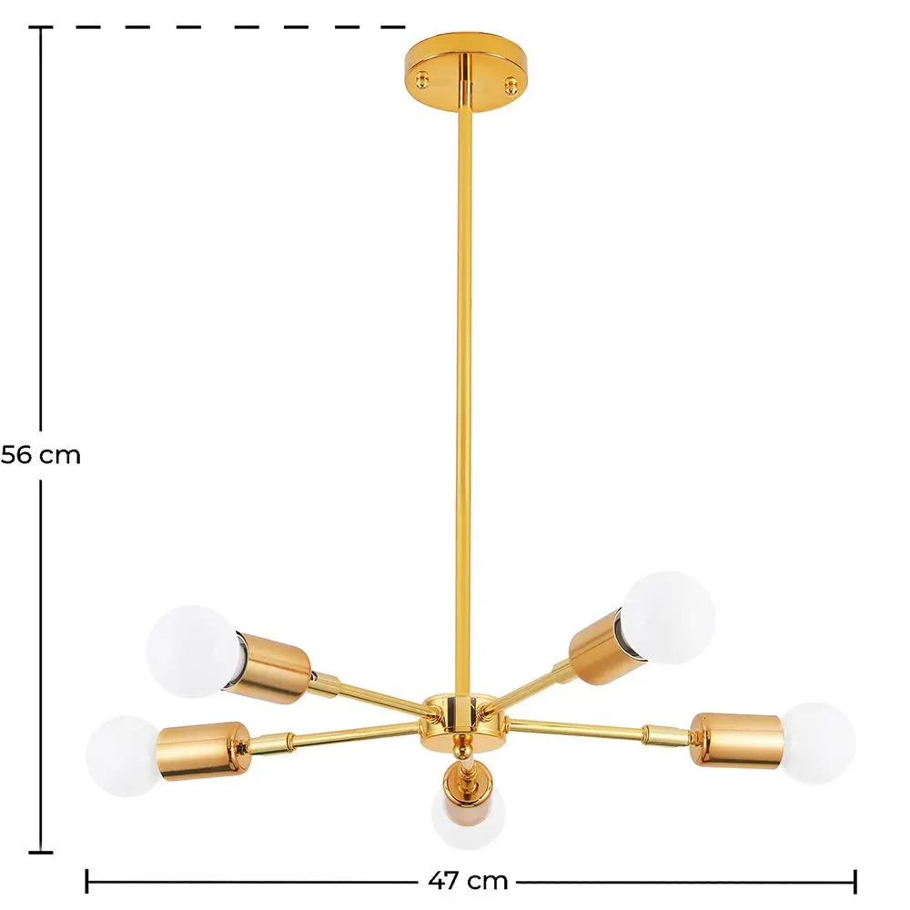 Se procura um candeeiro suspenso que dê à sua decoração interior um aspeto luxuoso e moderno, este candeeiro de design será a sua peça-chave. O nosso candeeiro Carla é fabricado em metal dourado e tem qualidade superior. Tem 5 pontos de iluminação para que o possa colocar em grandes espaços, pelo que os hotéis, restaurantes ou cafés também beneficiarão da sua funcionalidade.