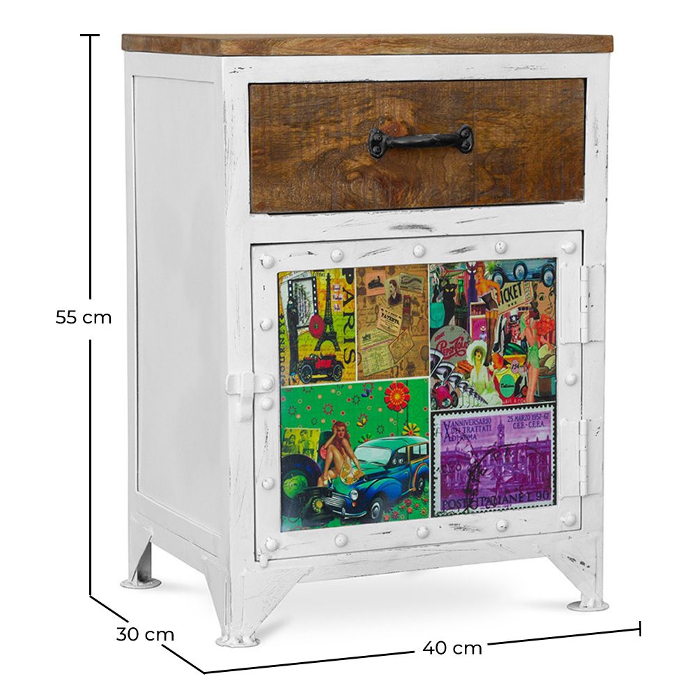 A Mesa de Cabeceira Mango pertencente à coleção Grange&Co é feita em ferro e madeira. Peça-chave para darwood caráter a uma sala, tem uma altura de 55 centímetros e consiste numa gaveta e num grande compartimento inferior onde pode armazenar tudo o que precisa de ter à mão. Esta mesa de cabeceira de estilo industrial tem um design original, perfeito para fazer a diferença. Estável e robusta, esta mesa pode suportar uma grande quantidade de peso sem perder a estabilidade. Se está à procura de uma peça que traga originalidade e estilo ao seu quarto, a mesa de cabeceira Manga vai, sem dúvida, trazer-lhe aquilo que procura.