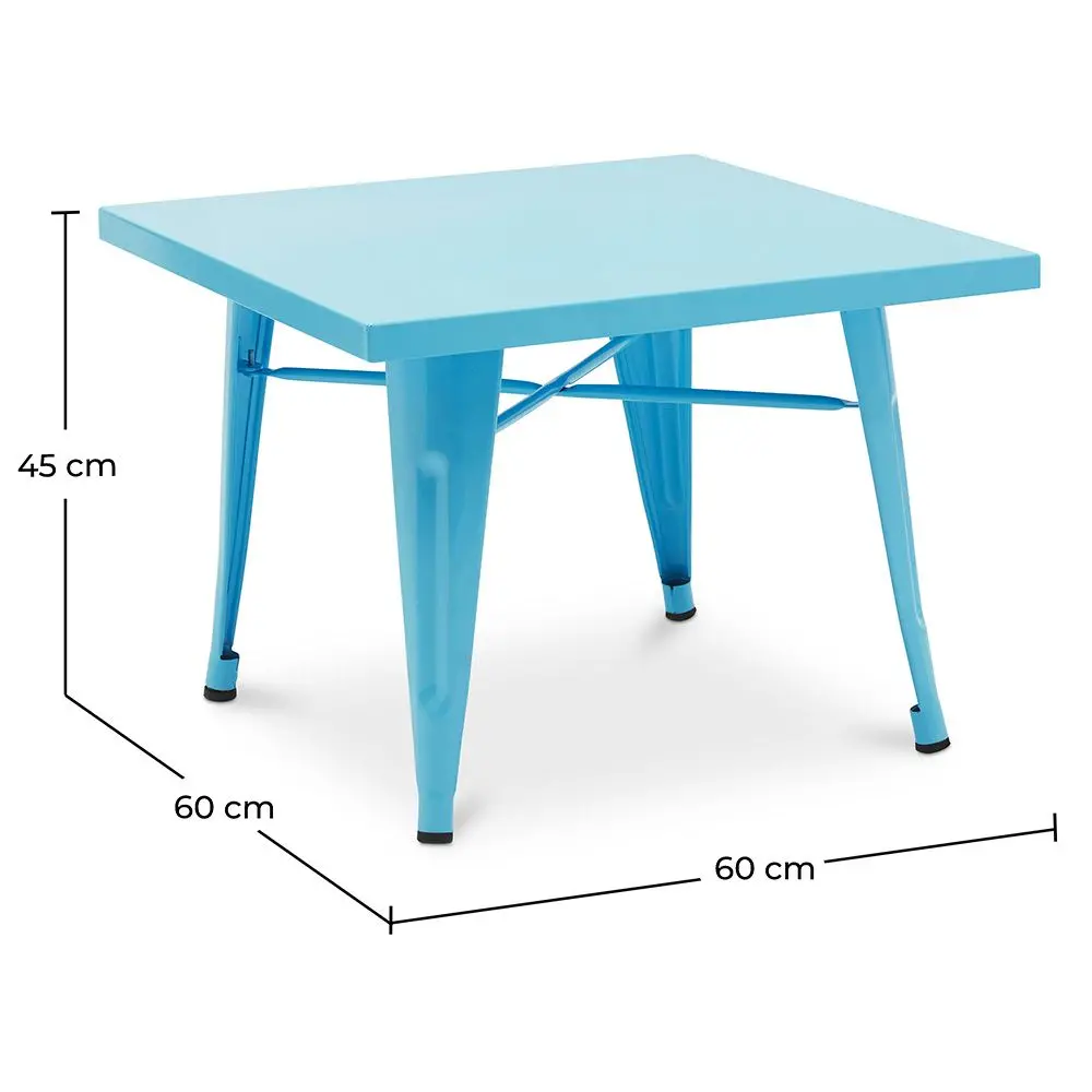 Se procura uma mesa para crianças que melhore o design do quarto dos seus filhos e também seja muito resistente, encontrou a mesa perfeita. A mesa para crianças Bistrot Metalix style é feita de aço sólido, é muito robusta e estável, ideal para resistir ao uso e ao pouco cuidado dos mais pequenos da sua casa. Tem 4 tampas de borracha nas pernas para evitar que risquem o chão.
