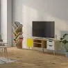 Gavetas, nichos, prateleiras ... este aparador de TV possui uma grande capacidade de armazenamento para ajudá-lo a manter sua casa em ordem. O aparador bonito e simples de uma unidade de TV baixa é feito de MDF de alta densidade. Graças às suas pernas de madeira sólidas, é muito resistente e estável. O aparador da unidade de TV não apenas ajudará você a manter suas coisas em ordem, mas também trará um toque de calor e design à sua decoração.