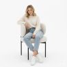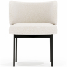 A cadeira de jantar Calibri é perfeita para hotéis, restaurantes e espaços comerciais devido à sua combinação de estilo e durabilidade. Seu design elegante e moderno se adapta a diferentes ambientes, enquanto o encosto ergonômico e o assento redondo proporcionam conforto aos clientes durante sua estadia. Além disso, a estrutura resistente de metal preto e o estofamento em tecido bouclé garantem que a cadeira possa suportar o uso intensivo sem comprometer sua aparência e qualidade.