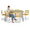 Este pack com uma mesa de madeira com pernas hairpin e 6 cadeiras de madeira com assento em veludo é um produto de qualidade premium, duradouro e luxuoso. É ideal para restaurantes, cafés e hotéis. A mesa de estilo industrial tem um design único com pernas em forma de garfo e as cadeiras têm um encosto em rattan de estilo cannage que dará ao seu espaço um toque de elegância. Aposte neste conjunto a um preço muito especial.