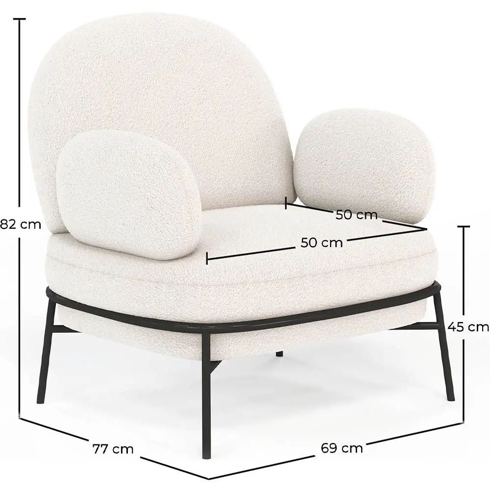 A poltrona Hedar estofada em tecido bouclé branco, com uma estrutura sólida de metal preto, é a própria definição de elegância e conforto. Com seu design simples e amplo, esta poltrona é perfeita tanto para hotéis de luxo quanto para salas de reuniões de alto padrão ou até mesmo para uso doméstico. Seu estofamento em tecido bouclé branco confere-lhe uma aparência sofisticada e atemporal, enquanto a estrutura de metal preto adiciona um toque contemporâneo e resistente. Sem dúvida, esta poltrona é um item essencial para os amantes de design de interiores.