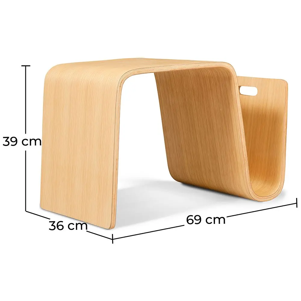 Porta-revistas Aurora - Madeira. O Porta-revistas Aurica é feito integralmente em madeira e é um produto multifunções que pode ser usado como mesa pequena, porta-revistas, tamborete, suporte para o portátil... Este é um dos designs mais práticos que estão disponíveis e também dá um toque de elegância a qualquer canto.