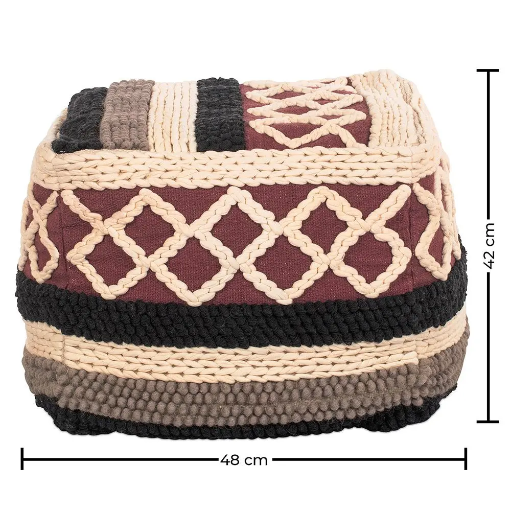 Este pufe de design é a escolha ideal para complementar um sofá acrescentando conforto extra ou como assento auxiliar. O seu look étnico inspirado no estilo boho permitir-lhe-á integrá-lo perfeitamente em qualquer decoração. Estofado em algodão, o nosso pufe quadrado Munbay é suave e muito agradável ao toque.