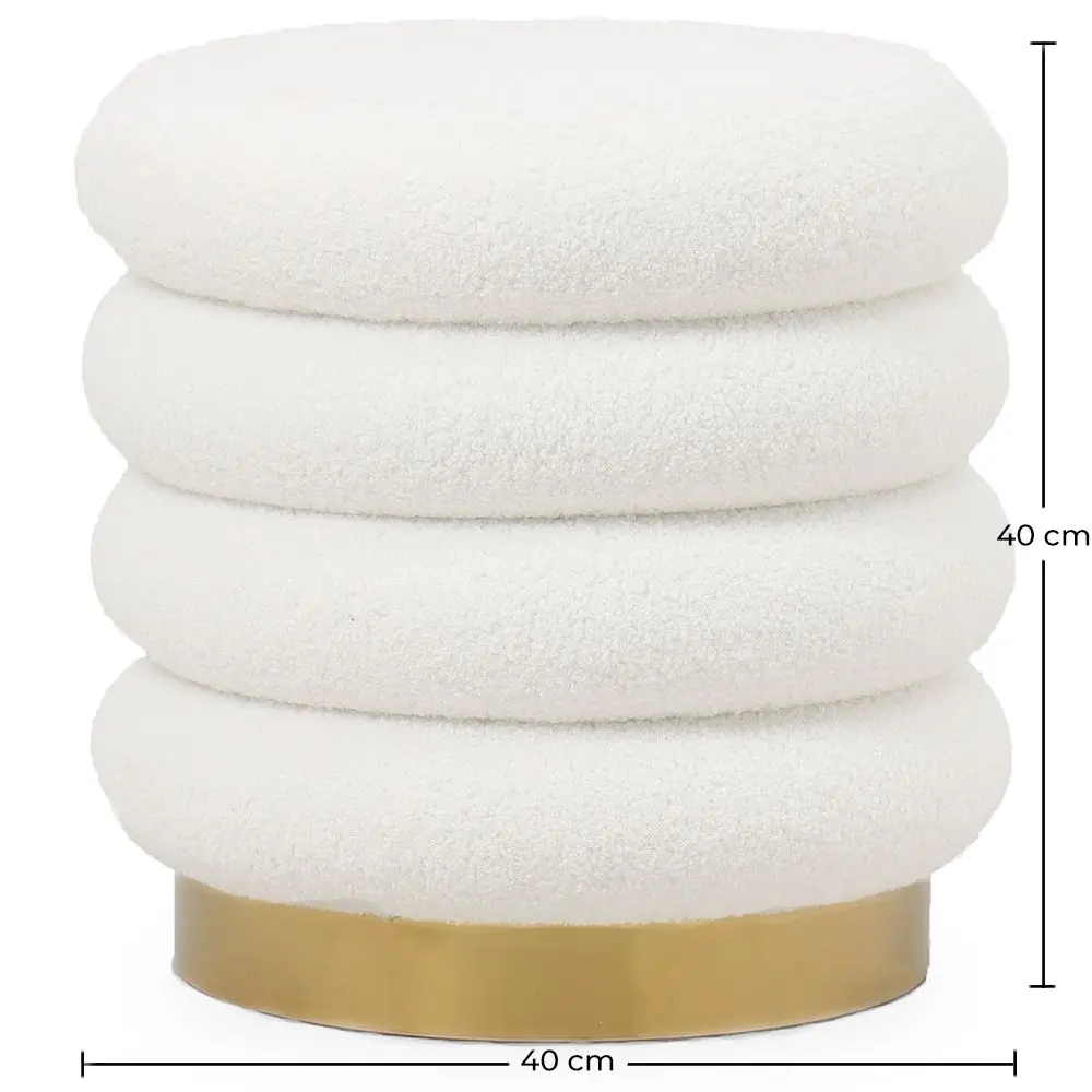 Desfrute do máximo conforto e estilo com o nosso pufe redondo estofado em tecido bouclé que lembra a lã de carneiro. Com uma estrutura de madeira e uma base dourada, este pufe combina elegância e modernidade em um design único. O seu estofamento macio e acolhedor proporciona uma experiência de assento luxuosa, enquanto o seu design redondo oferece um aspecto contemporâneo. Perfeito para adicionar um toque de sofisticação a qualquer espaço, este pufe é sinônimo de qualidade superior e estilo refinado.