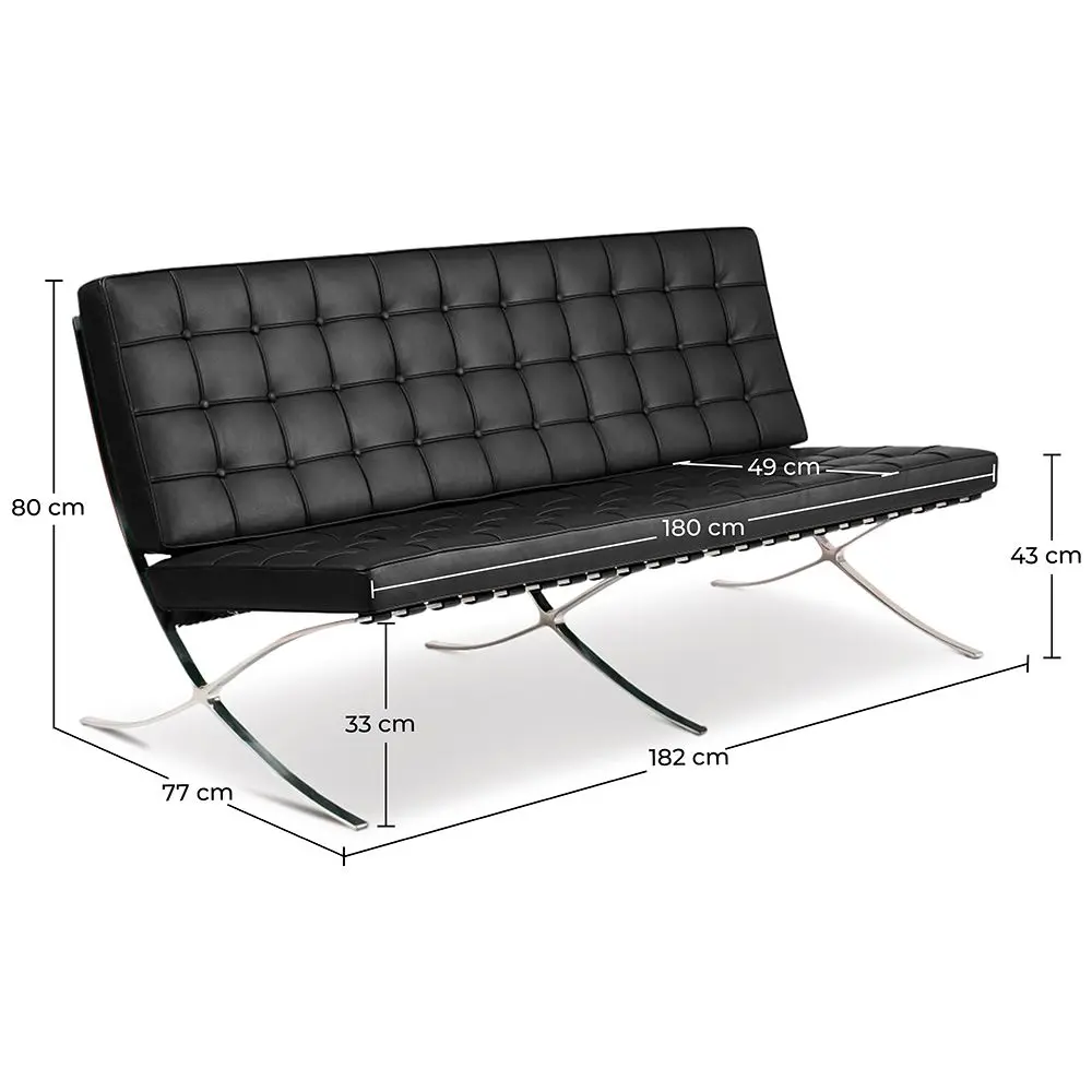 Este Sofá de Sala de Estar City de 3 lugares tem sido um símbolo do design moderno desde o dia da sua criação. Baseia-se numa simples combinação de couro e aço inoxidável. Este modelo superior combina subtileza com um design contemporâneo que convida ao relaxamento e a proporciona uma frescura especial. Esta peça de mobiliário com linhas refinadas tem um design que lhe vai permitir encaixar perfeitamente no seu interior. Este é um sofá firme, mas que oferece um conforto voluptuoso. Sente-se e relaxe com um bom livro para um descanso bem merecido.