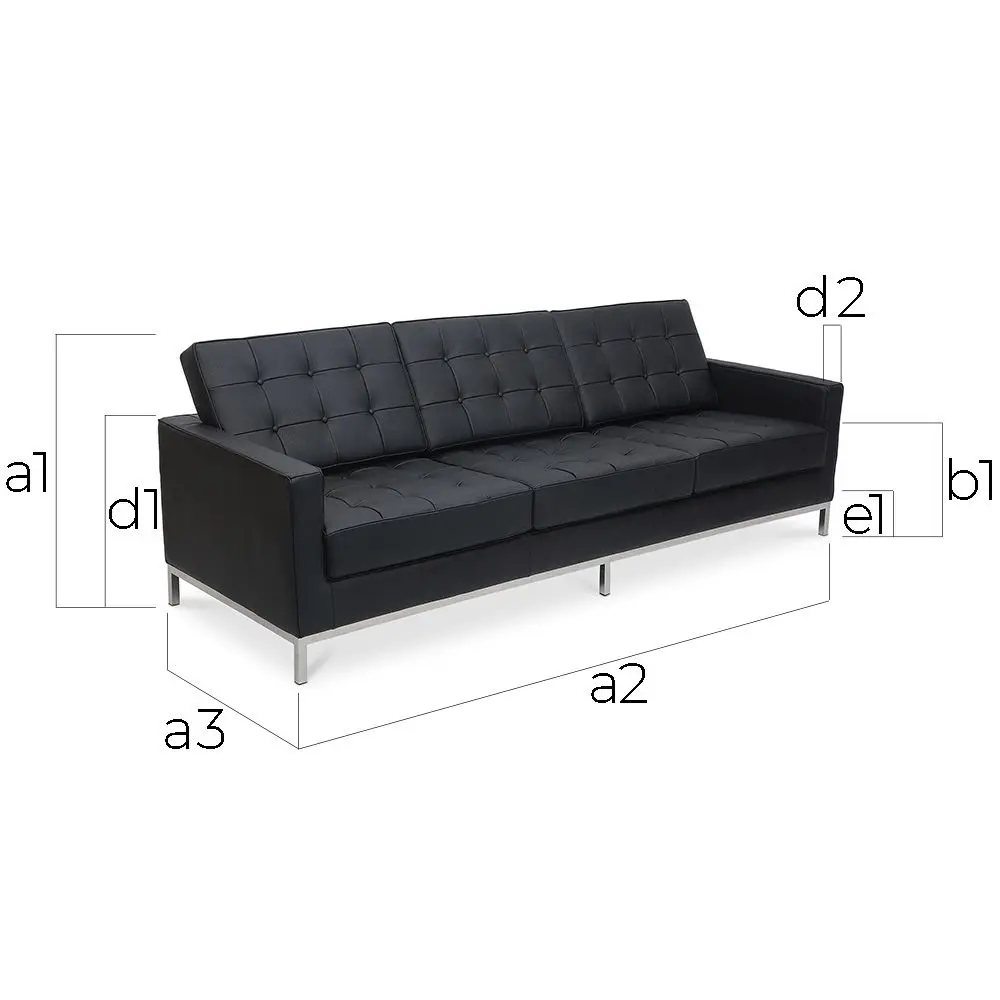 Concebido em 1954, o Sofá Kanel de 3 lugares é um dos sofás de design por excelência, com certas características baseadas em móveis ingleses do século 18, mas ainda assim totalmente moderno com as suas linhas retas e minimalistas. É composto por pernas de aço inoxidável por baixo de uma estrutura de madeira. É completamente coberto em couro, o que oferece um conforto total.