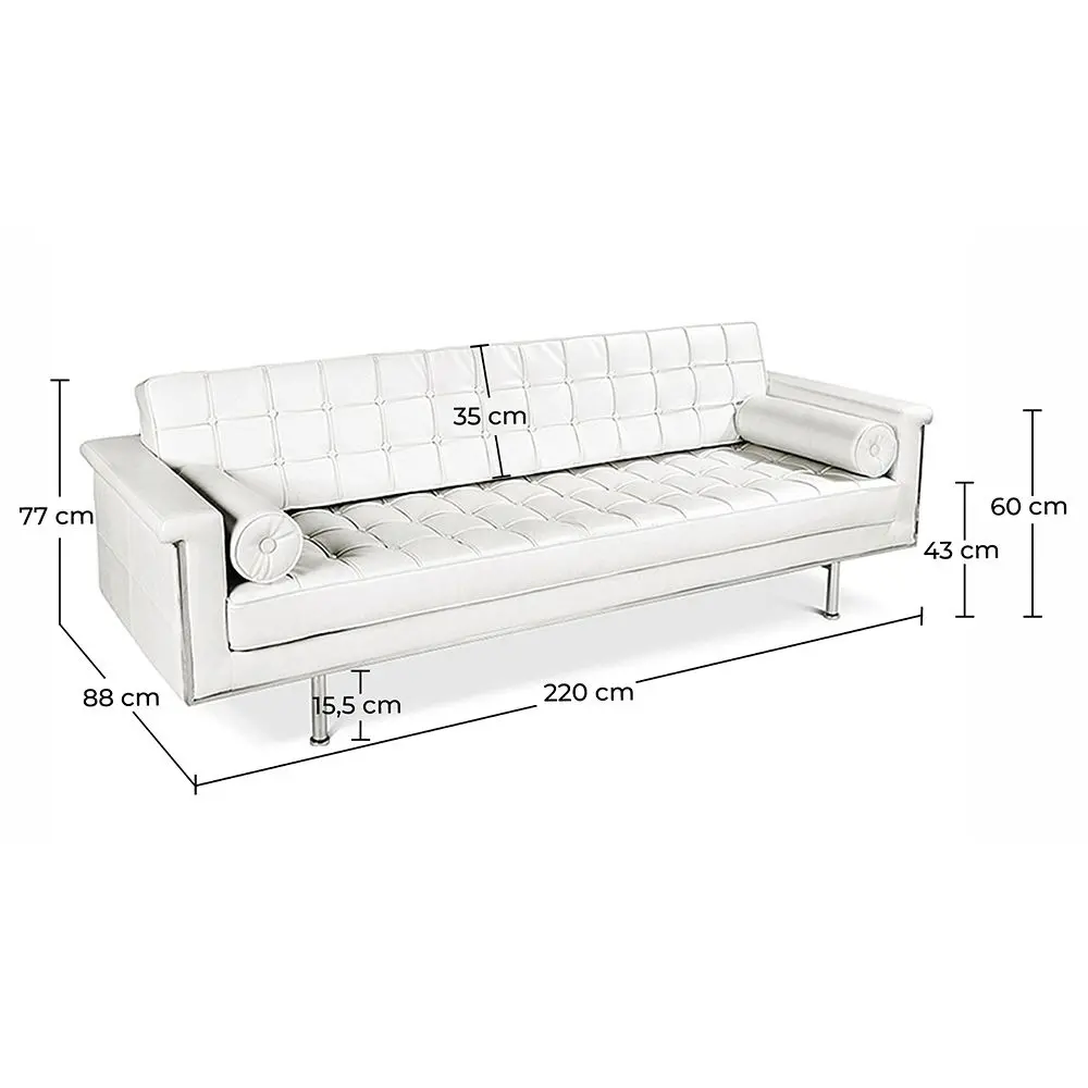 Com o nome do seu prestigiado designer, este Sofá de Design Trendy de 3 assentos é elegante e confortável. É formado por uma estrutura de aço inoxidável estofada em imitação de couro. Este modelo superior combina subtileza com design contemporâneo, relaxamento e leveza. Esta peça de mobiliário com linhas refinadas tem um design que lhe vai permitir encaixar perfeitamente no seu interior. Este é um sofá firme, mas que oferece um conforto voluptuoso. Sente-se e relaxe com um bom livro para um descanso bem merecido.