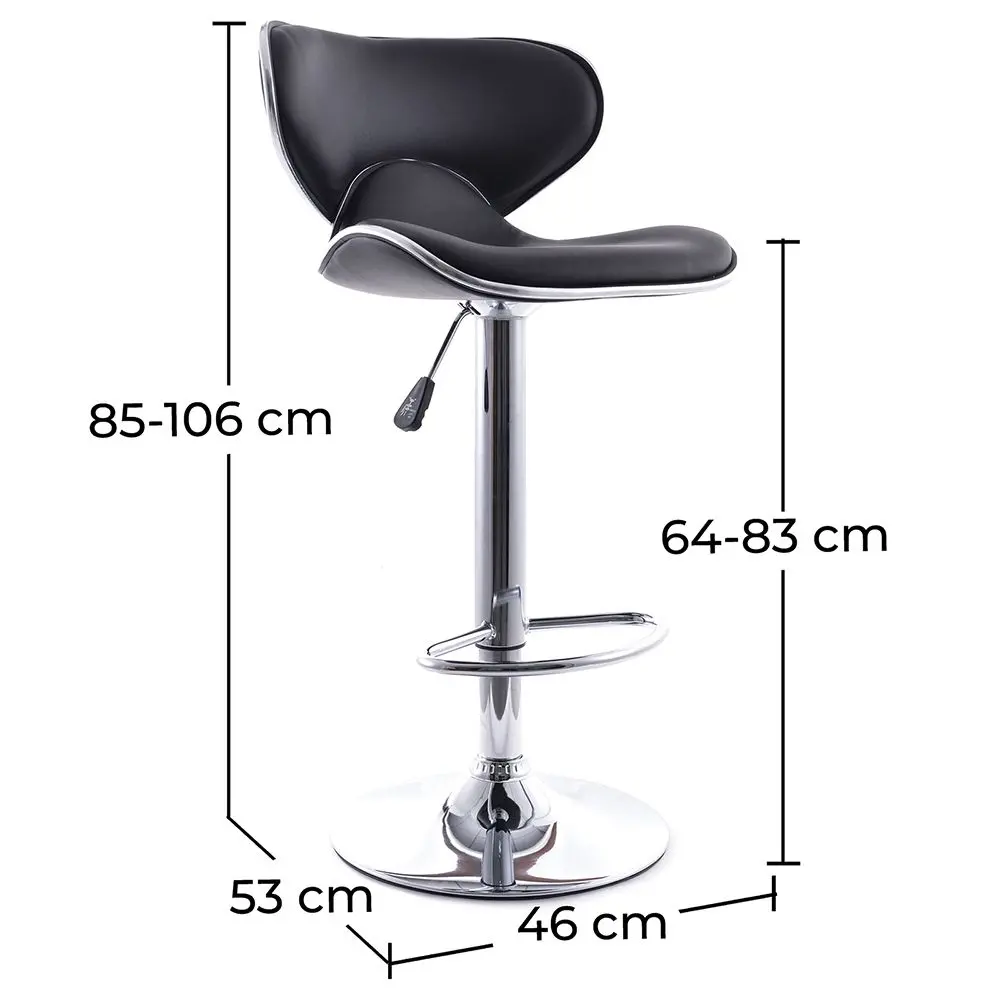 Este prático tamborete de bar Curve Back em metal cromado e altura ajustável é confortável, prático e muito original. Ideal para cozinhas, bares e balcões, tem um design elegante e confortável graças ao encosto que tem simplesmente a altura perfeita das costas para que possa descansar com uma postura reta. Além do seu design clássico, o tamborete de bar Backrest é muito prático, porque não só tem um mecanismo interno a gás que permite ajustar a sua altura de oitenta centímetros até cem centímetros, mas também pelo seu assento feito em PU que é giratório, muito resistente e fácil de limpar e conservar.