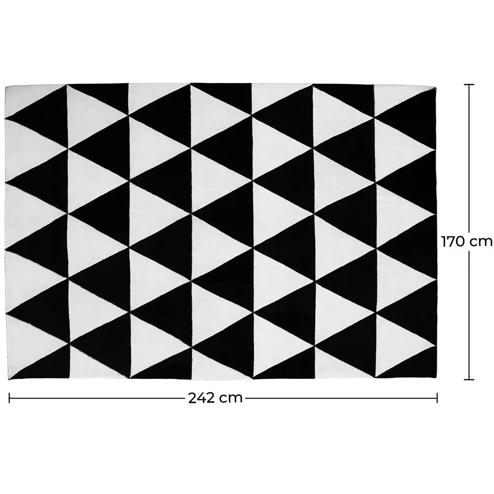 A combinação do branco e do preto dá elegância e classe. Com este tapete vai poder obter esse efeito na sua sala de estar ou quarto. Este tapete é suave e macio ao toque graças à lã de grande qualidade usada na sua fabricação. Aposte neste tapete de design e comece a desfrutar da sua sala de estar.