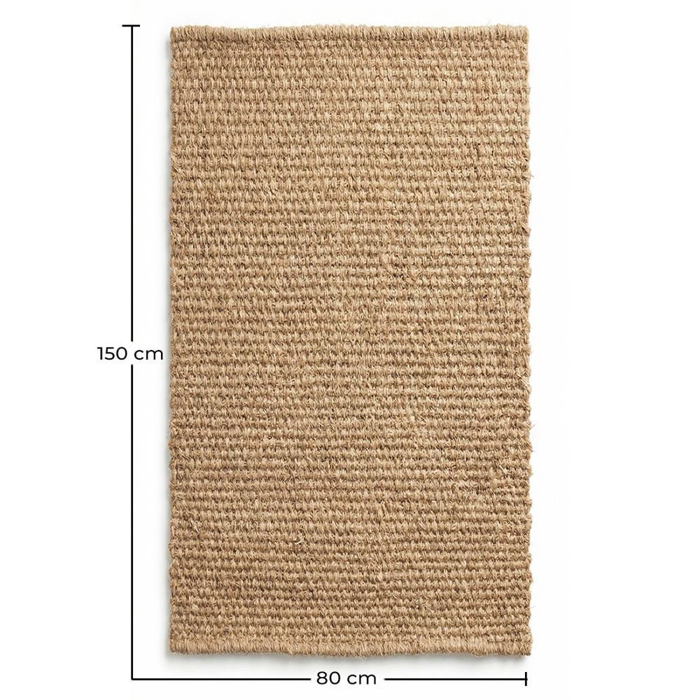 Graças ao seu tamanho de 150x80cm, é ideal como tapete de sala de estar, tapete de terraço coberto, tapete de alpendre, tapete de entrada ou até mesmo como um tapete decorativo de sala de jantar. Seu acabamento em tom natural se mistura facilmente com estilos nórdico, rústico, mediterrâneo ou boho.