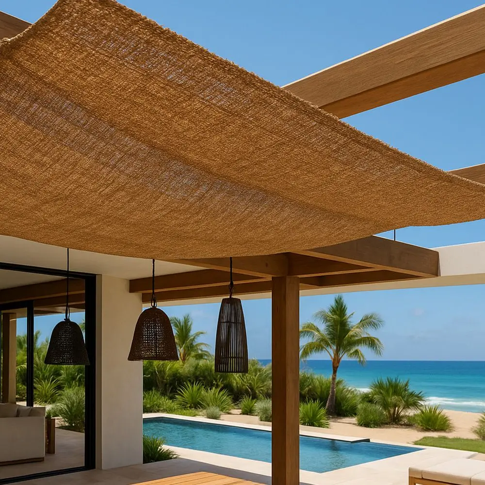 O toldo de fibra de coco apresenta-se como uma alternativa original e sustentável para oferecer sombra e proteção solar em jardins, terraços e outros espaços ao ar livre. Este tipo de malha, fabricada com fibra natural de coco e anéis de aço inoxidável, destaca-se pela estética rústica e pelo compromisso com o meio ambiente, sendo uma excelente opção para quem procura conforto sem comprometer a sustentabilidade.