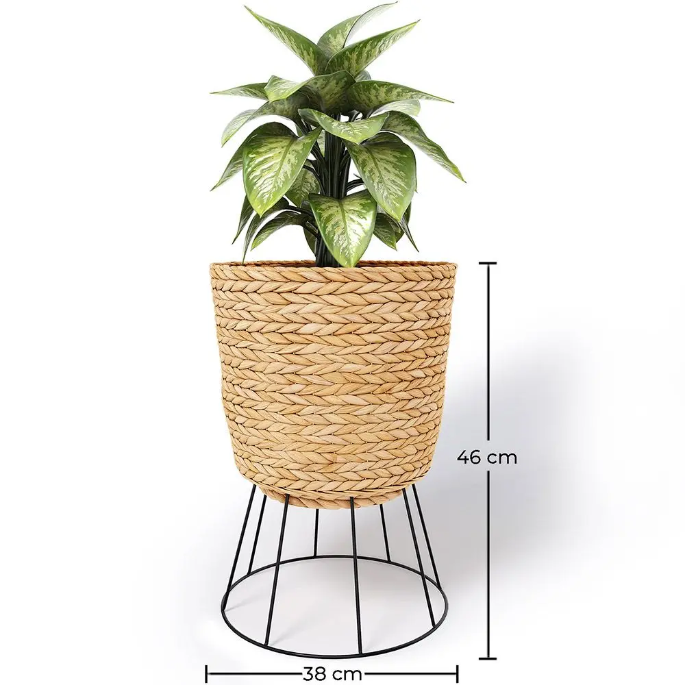 Descubra a harmonia natural com este encantador vaso de chão redondo, confeccionado com um tecido de jacinto d'água em cor natural e realçado por uma estrutura metálica negra, tudo a uma altura de 46 cm. O jacinto d'água, habilmente entrelaçado ao redor do vaso, adiciona uma textura cálida e uma sensação acolhedora, enquanto a estrutura metálica negra garante durabilidade e um toque moderno. Com 46 cm de altura, este vaso torna-se o cenário perfeito para realçar a beleza das suas plantas, proporcionando uma fusão de estilo natural e contemporâneo que eleva a estética de qualquer espaço.