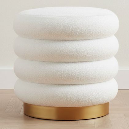 Pufe Redondo Estofado em Tecido Bouclé - Leonora